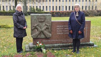 1.11.2025 Pyhäinpäivänä E-K Wiipuri-seuran kukat laskettiin Karjalaan jääneiden muistokivelle,