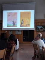 13.10.2025 oli vuorossa Mirjaleena Pekkasen mukava kuvaesitys viipurilaissyntyisen Onni Mansneruksen elämästä ja taiteesta. Monipuolinen taiteilija kuvitti myös satukirjoja. Muutama kirja kiersi pöydissä selailtavana,