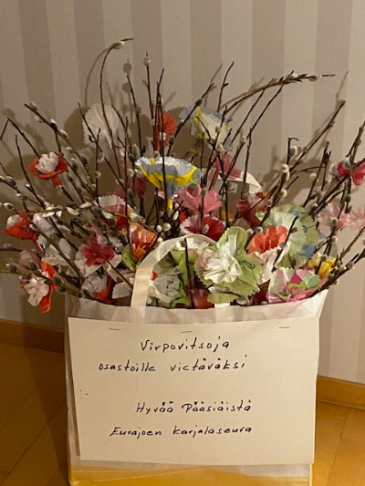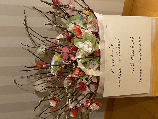 Jokisimpukkaan on seuran puolesta viety kassillinen silmän iloa vanhuksille jaettavaksi.