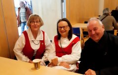 Jäseniämme oli mukana messuryhmässä, kahvituksessa ja muutama jäsen myös kuoroissa, joiden toimesta messu toteutettiin Järvenpään seurakunnan kanssa Järvenpään kirkossa. Tapahtuma sai paljon kiitosta. Markku Ronkaisen ottamassa kuvassa muutama hallituksen jäsen kirkkokahveilla.