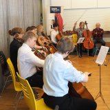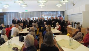Kulttuurijohtaja Pirre Raijas toi tervehdyksen, Ajattomat lauloivat, Eero Ojala esitti Vääky-monologin, Antti Mäki lausui ja Heikki Romppanen soitti haitaria. Lopuksi KUM:n selloryhmä esiintyi Heikki Kulon johdolla. Kuvat Lothar Mallon.