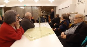 Saimme vieraaksemme musiikkineuvos Seppo Hovin. Hän tarinoi ja musisoi Myllytien työ-ja toimintakesukksesen ruokasalissa . Tilaisuus oli kaikille avoin ja maksuton ja sali olikin täynnä kuulijoita. Järvenpään kaupunki tuki tapahtumaa. Kuvat Lothar Mallon.