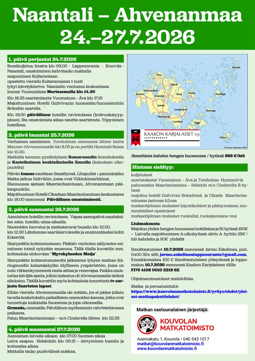 Matkan vastuunalainen järjestäjä: Kouvolan Matkatoimisto Oy