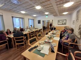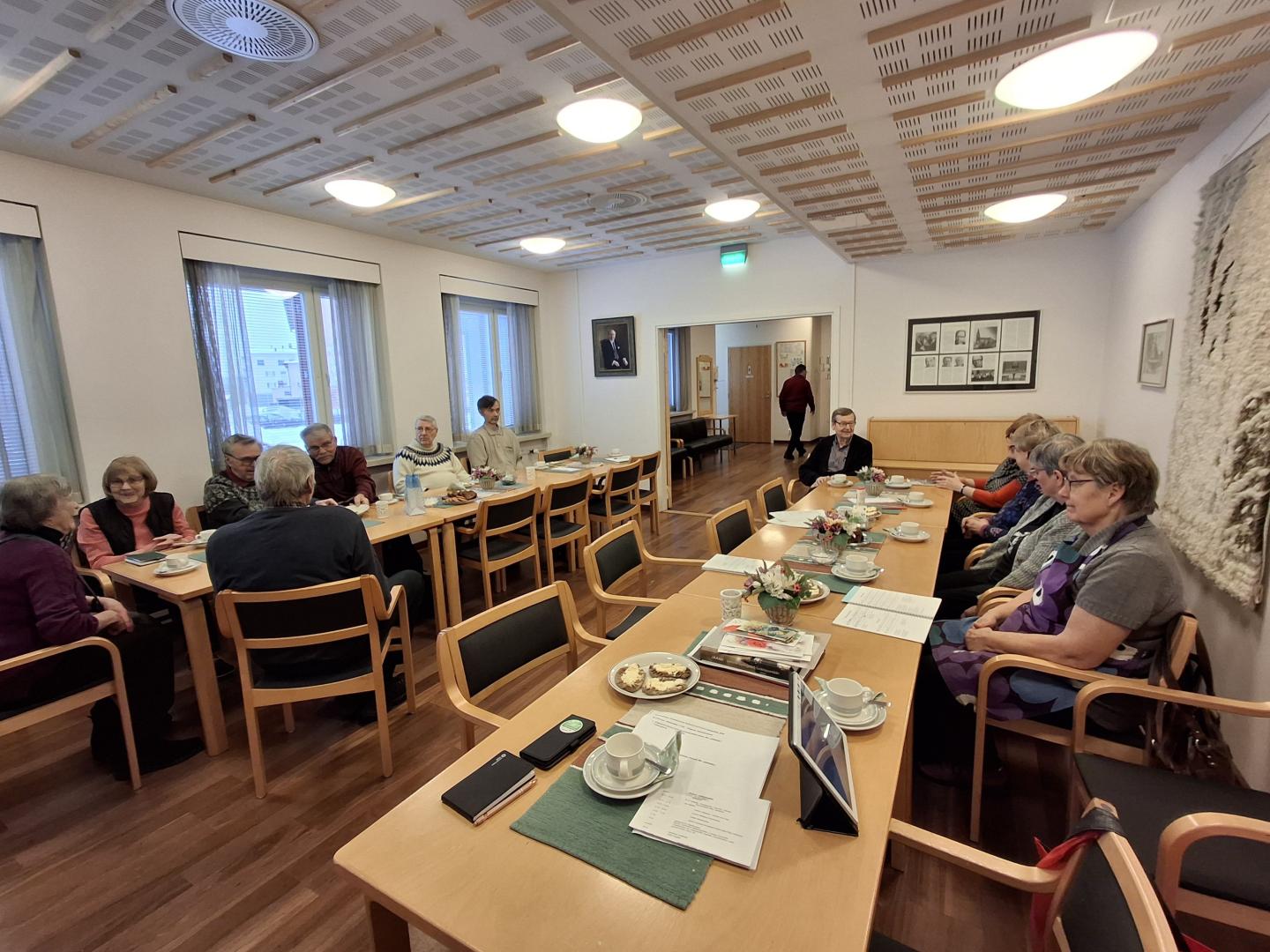 Kuvissa alhaalla tämän vuoden tammikuun tarinakerhojen osallistujia, aiheina olivat mm. tämän kevään toiminnan suunnittelua ja 26.1.2026 saimme katsella Jaakko Nikamaan esittämänä matkakertomusta Vuokselasta.