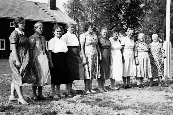 Pyhäkylän Martat retkellä, Koivikko 1959. Kuvassa vasemmalta Tyyne Halonen, Anni Kuosa, Anni Happonen, 4. ehkä Pusa ?,…, 8. Hanna Pusa ( Jalmarin vaimo)