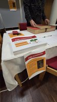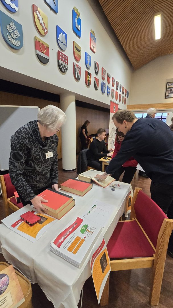 Esillä oli myös tutustumista varten kirjasarja "Siirtokarjalaisten tiet" osat 1-4.
