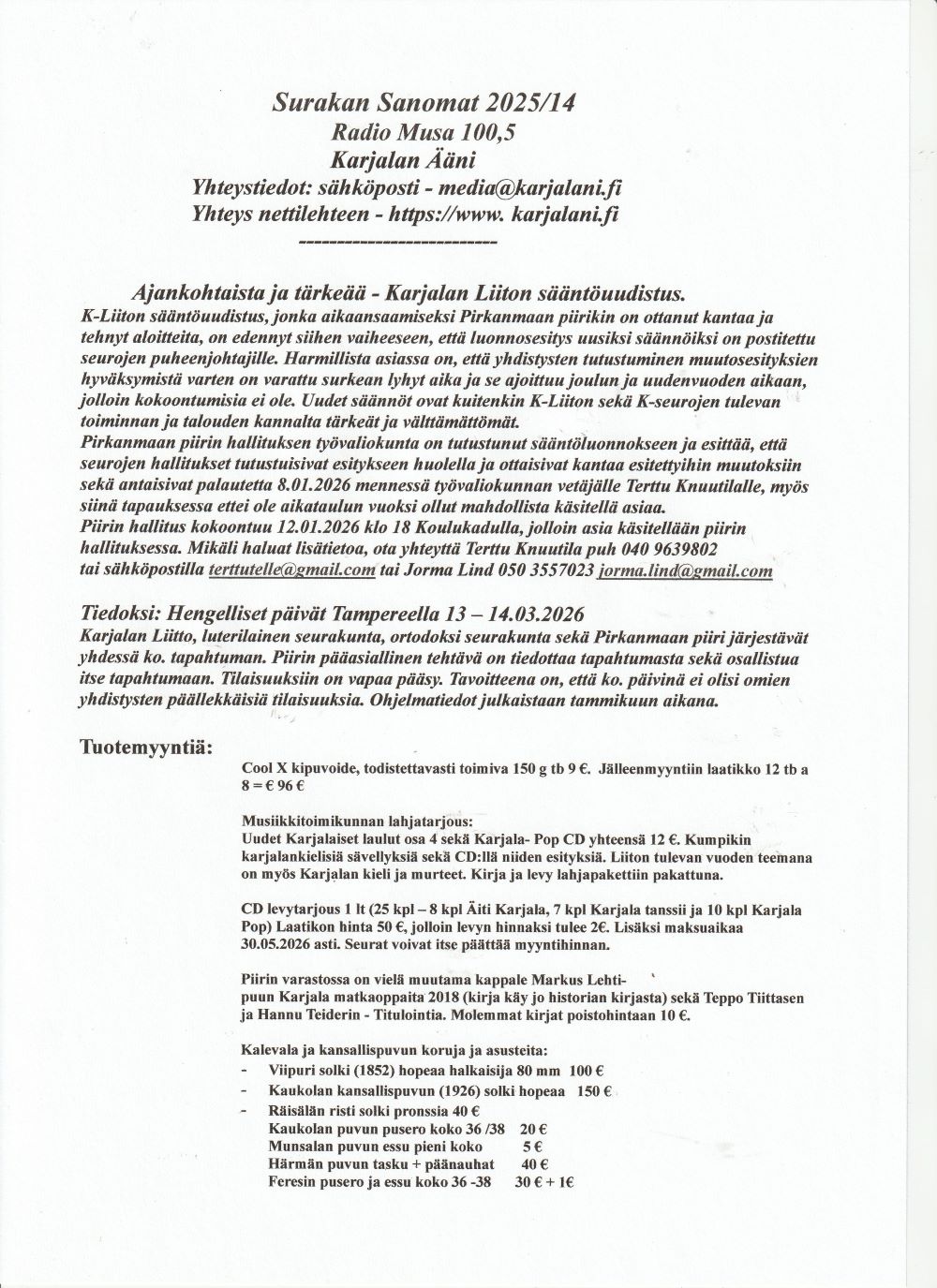 Piirin edustajat laskevat seppeleen sodissa kaatuneiden muistomerkille Tampereen Kalevankankaalla ja seppeleen siunaustilaisuus Kalevan kirkossa 15. maaliskuuta 2020. Oikeanpuolimmainen kuva takavuosilta Karjalaisilta Kesäjuhlilta. Tuorein kuva: Kekrijuhla Kangasalan Äijälässä 30.8.2025.