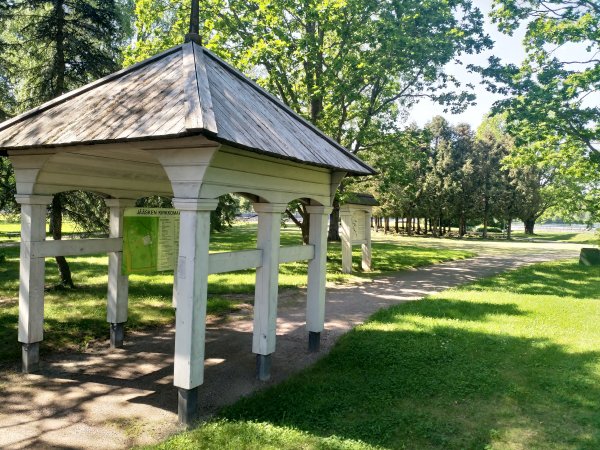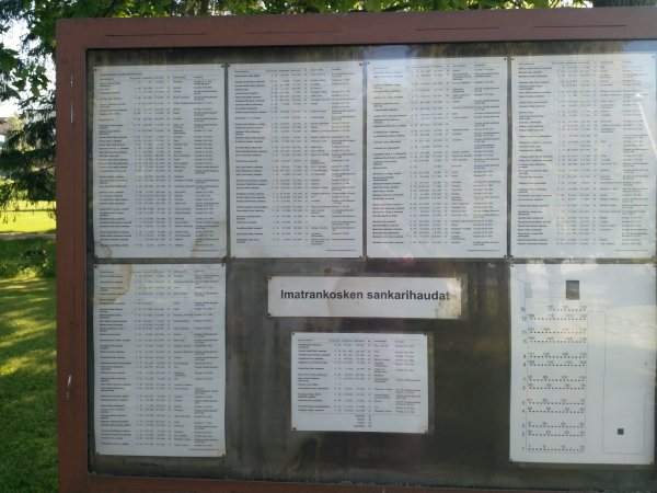 Kirkkopuistossa on luettelo sankarihautausmaalle haudatuista vainajista.