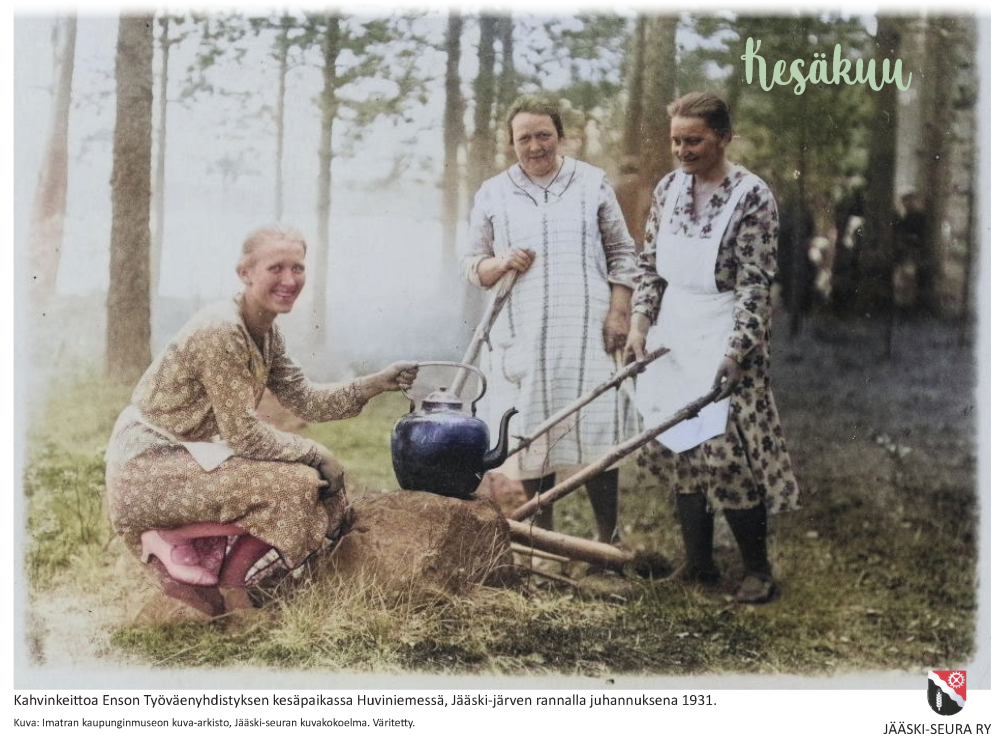 Kuva: Kahvinkeitossa juhannuksena 1931 Jääski-järven rannalla. Imatran kaupunginmuseon kuva-arkisto, Jääsken kuvakokoelma.