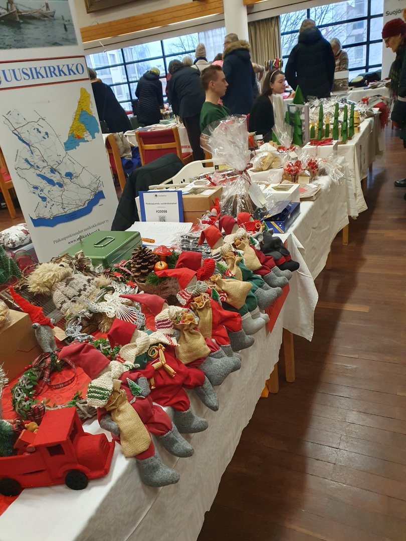 Joulukuussa 13.12. olikin sitten perinteiset joulumarkkinat, joihin uusikirkkolaisilla oli 4 myyntipöytää: 2 Uuusikirkko-seuralla ja 2 Pääkaupunkiseudun uusikirkkolaisilla.