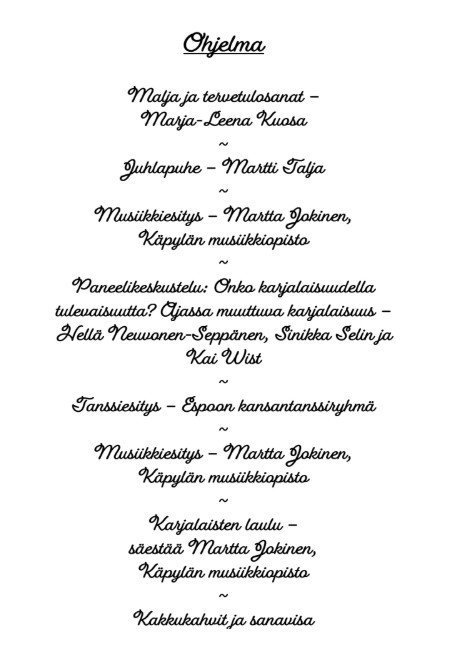 12.10. olikin yhdistyksen 50-vuotisjuhlat Karjalatalon Wiipurisalissa. Juhlapuhuja KL:n puheenjohtaja Martti Talja. Panelisteina YTT Hellä Neuvonen-Seppänen ja FT Sinikka Selin keskustelemassa karjalaisuuden tulevaisuudesta. Musiikkiesityksistä vastasi Käpylän musiikkiopistolta Martta Jokinen ja tanssista Espoon kansantanssijoiden ryhmä. Upeasti soi Karjalaisten laulu kolmen hanuristin säestämänä.