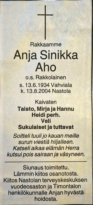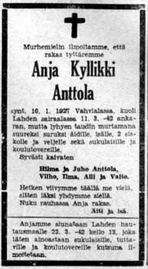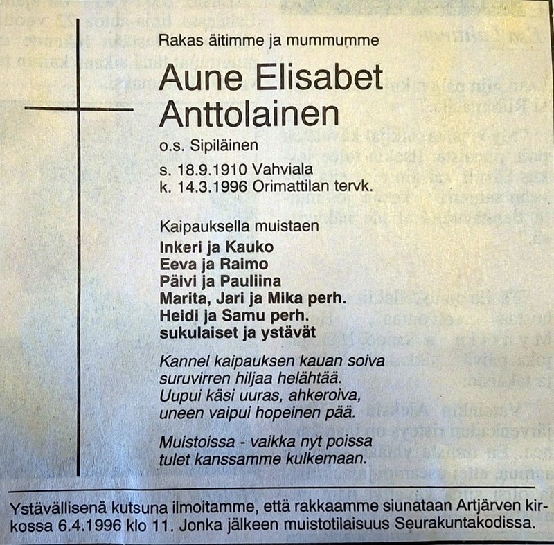 Anttolainen Aune Elisabet (Vahviala kk Sipilä)
