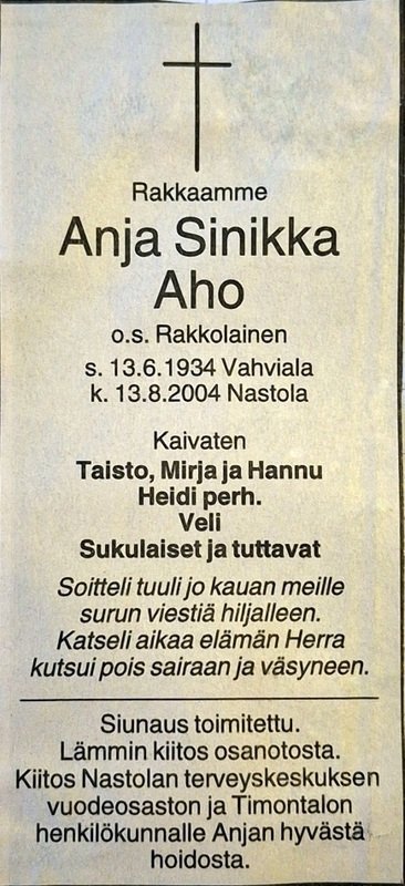 Ahokas Alma, os. Pekkala (Tervajoki)