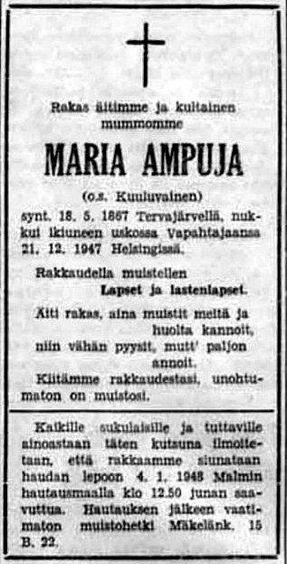 Ampuja Maria (Vanhakylä Ampuja /Tervajoki)