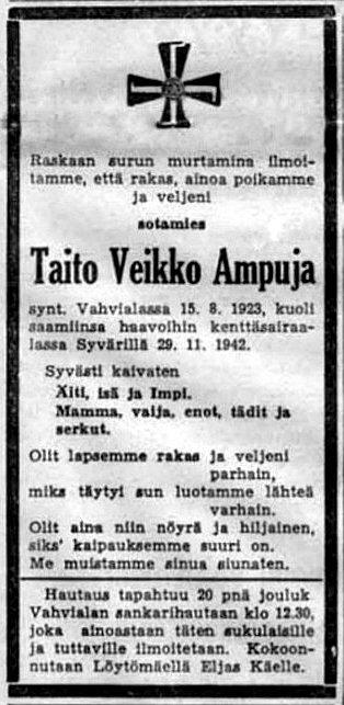 Ampuja Toivo (Vanhakylä Ampuja) sankarivainaja