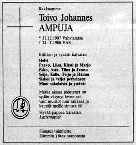 Ampuja Toivo Johannes (Vanhakylä Ampuja)