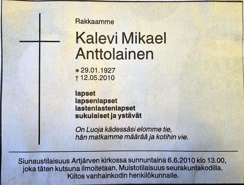 Anttolainen Kalevi Mikael (Vahviala kk Anttila)