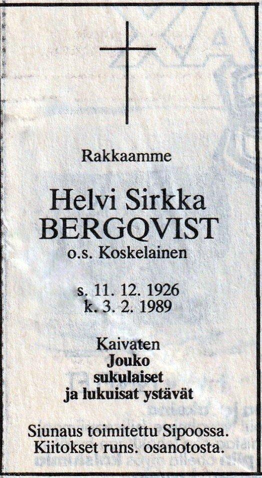 Bergqvist Helvi Sirkka, os. Koskelainen (Tervajoki 39)