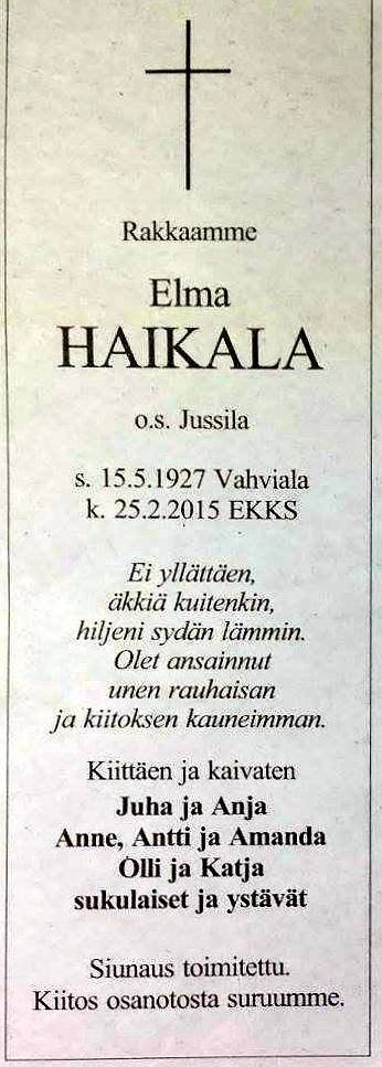 Haikala Elma, os. Jussila (Vahviala)