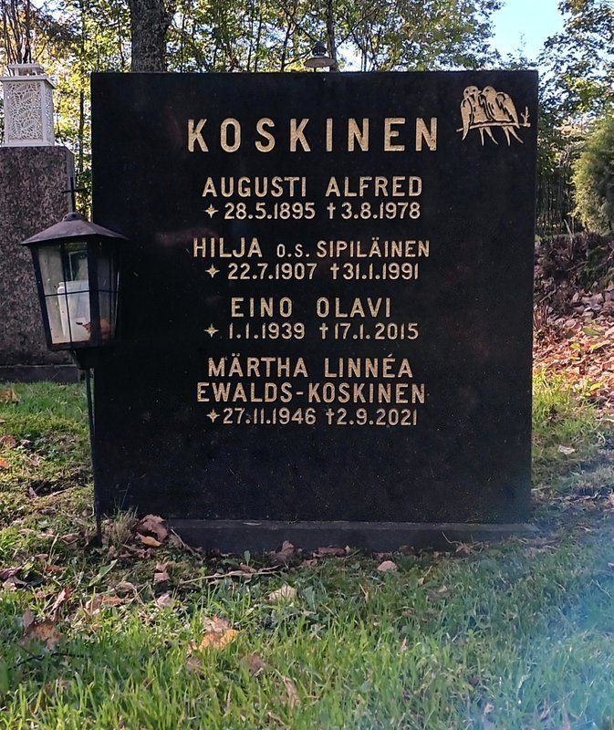 Koskinen Hilja, os. Sipiläinen (Vahviala kk Sipilä) Espoon kappelin hautausmaa 24.9.2025 Kuvaaja Matti Mentula (Matti Mentula)