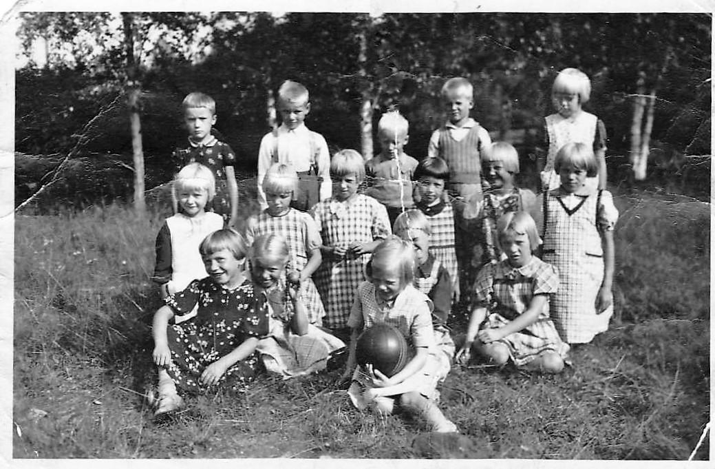 Pelaavia lapsia: 1. Kaija Sahala (ho14), 2. Maija Mälkki (ho24), 4. Raija Rahkonen (lo31), 6. Pirkko Hakala (lo), 7. Eini Vahvelainen (ho18), 8. Raini Houni (ho23/12), 9. Oili Mikontytär Venäläinen (ho26), 10. Pirkko Vihtonen (lo13), 11. Hilkka Venäläinen (ho27), 12. Maija Väänänen (ho4), 13. Olavi Vilhonpoika Venäläinen (ho26), 14. Antti Houni (ho25), 15. Erkki Mikonpoika Venäläinen (ho26) ja 16. Helli Sipiläinen (ho29). Houni 1930- luvun lopulla (Oili Aarnialho)