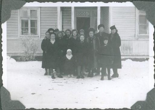 Anja Toivola (myöh Koskelainen) kertoo omasta evakkomatkastaan kevättalvella 1940. "Olin Saunalahessa kotonnain, ko pit juosta vastapäisen talon kellarii pommii suojaa. Sielt mei pit lähtee Monrepoon koululle eikä päästykkää ennää kottii. Eikä myö saatu mittää mukkaa. Miul ol käslaukku, missä ol rahapussi ja muutama valokuva sekä henkilöpaperit. Ens oltii Vahvialan kirkonkylässä Sipiläisellä muutama päivä. Sit mäntii Nurmin asemalle ja härkävaunuu. Hämeenlinnan kirkos myö oltii yötä ja oli nii julmetun kylmä. Kirkon penkillä koitettii nukkuu. Seuraavan päivän meiät vietii kuorma-autolla Pälkäneelle ja sit hevosella eri taloihi. Meiän perhe ja toine viipurilaine perhe päästii Aitoosee Heikkilän talloo. Siintä tul meille koti huhtikuuhu 1940 saakka." Kuvassa Anja oikealla sekä muutakin Heikkilän talon evakkoväkeä ja talon omaa väkeä. Aitoo Heikkilä kevättalvi 1940 (Eeva Immonen)