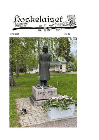 Hallituksen puheenjohtaja Päivi Heimola. Hallituksen varapuheenjohtaja Juha Henriksson. Sihteeri Vuokko Mäki, Koskelaisten sukuseuran lehti, Rahastonhoitaja Marjatta Larsio