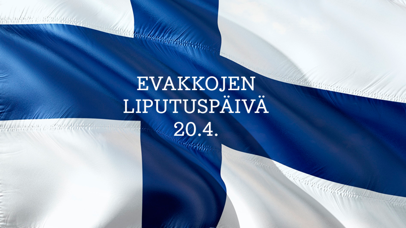 Sisäministeriö suosittaa yleistä liputusta koko maassa maanantaina 20.4.2026 evakkojen kunniaksi. Liput nostetaan salkoon klo 8 ja lasketaan auringon laskiessa, kuitenkin viimeistään klo 21.