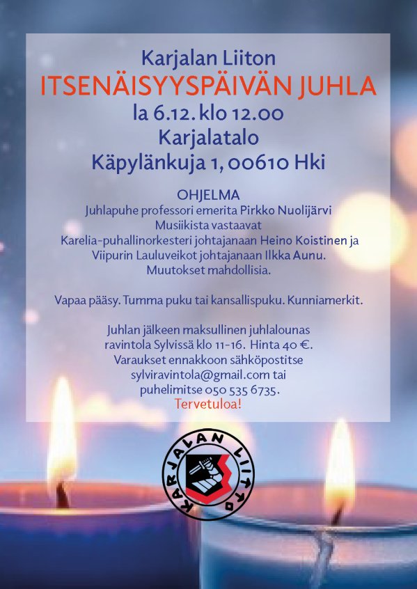 Lämpimästi tervetuloa Karjalan Liiton itsenäisyyspäivän juhlaan la 6.12. klo 12.00!