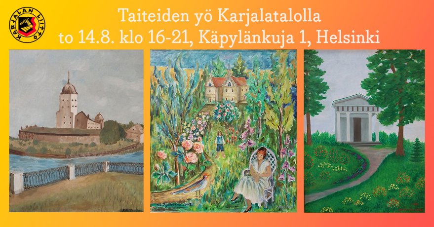Taiteiden yö Karjalatalolla to 14.8.