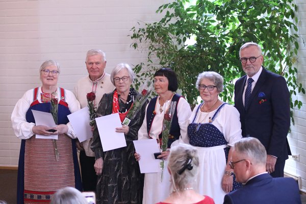 Martti Talja ja Marja Leena Markkanen suorittivat ansiomerkkien jaon. Karjalan Liiton hopeisen ansiomerkin saivat seuran puheenjohtaja Elsi Airaksinen, varapuheenjohtaja Harri Onttonen ja pitkään seuran hallituksessa toiminut Pirkko Karjalainen. Karjalan Liiton pronssisen ansiomerkin sai seuran sihteeri Raija Kanninen.