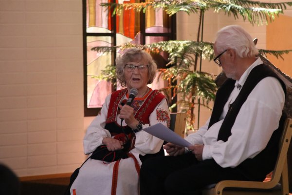Matti Hasu haastattelee Aune Vuotilaa karjalaisen elämän eväistä. Kuva: Riikka Venäläinen