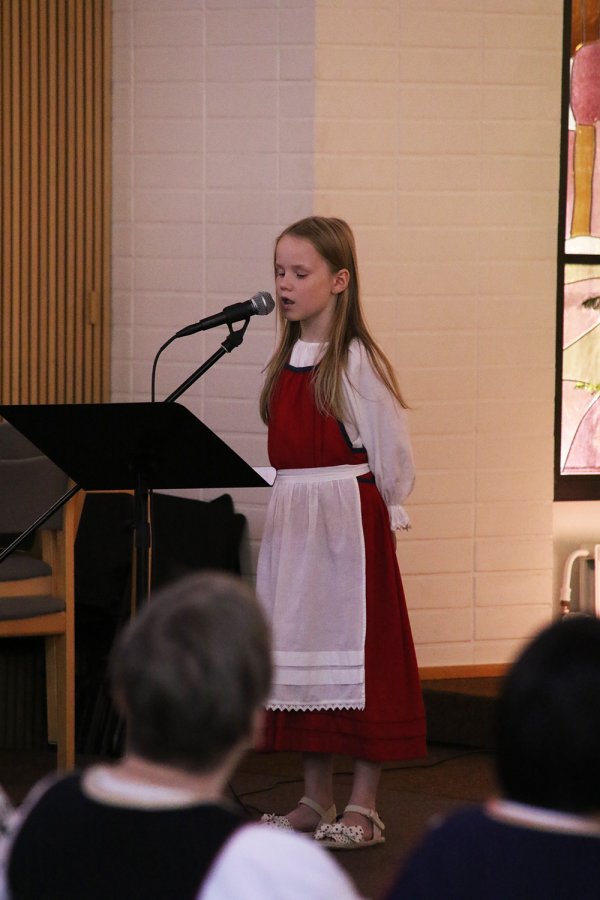 Juhlatilaisuus alkoi Karjalaisten laululla. Tervehdyssanat lausui Suonenjoen Karjalaseuran puheenjohtaja Elsi Airaksinen. Kahdeksanvuotias Iida Kanninen lauloi Suvi Teräsniskan albumilta Iltalauluja laulun Lintu Mirkka Hentilän säestäessä pianolla. Nuoresta iästään huolimatta Iida on kokenut esiintyjä ja takana on jo kaksi laulukilpailun voittoa.
