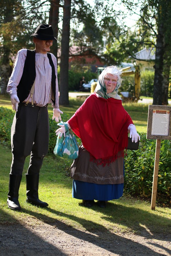 Astuessamme sisään juhlatilaan oven ulkopuolella meitä tervehtivät Opri ja Oleksi. Ne ovat hahmoja, jotka Suonenjoen Karjalaseura loi kesällä 2024 kertomaan evakoiden tarinaa. Opri ja Oleksi ovat olleet vilkkaimpaan mansikka-aikaan heinä-elokuussa esillä puistossa Suonenjoen keskustassa sekä viime että tänä kesänä. Karjalaisuuteen kuuluu, että syödään yhdessä, jutellaan ja iloitaan. Erinomaisen lounaan äärellä vaihdettiin kuulumisia ja mahdollisesti tutustuttiin joihinkin uusiin ihmisiin. Karjalainen kanssakäyminen on välitöntä.